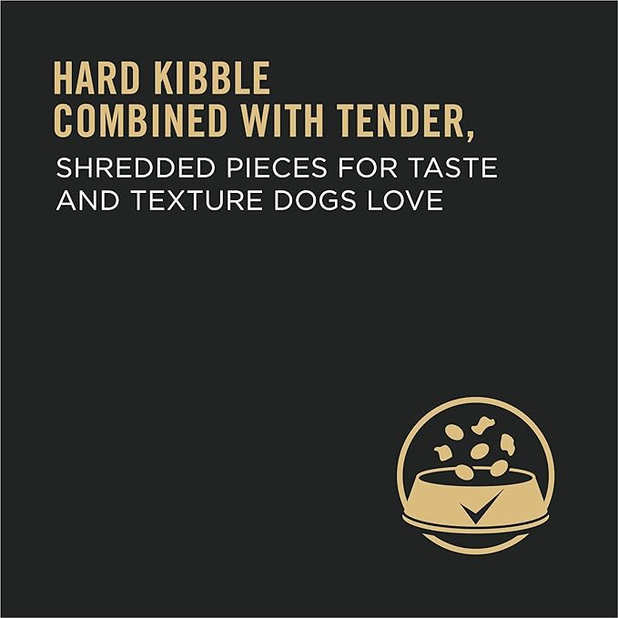 • Hard kibble combined with tender, shredded pieces for taste and texture dogs love