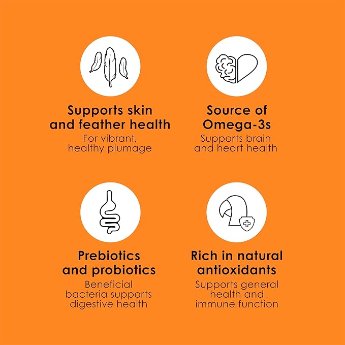 • SUPPORTS SKIN AND FEATHER HEALTH for a more vibrant plumage