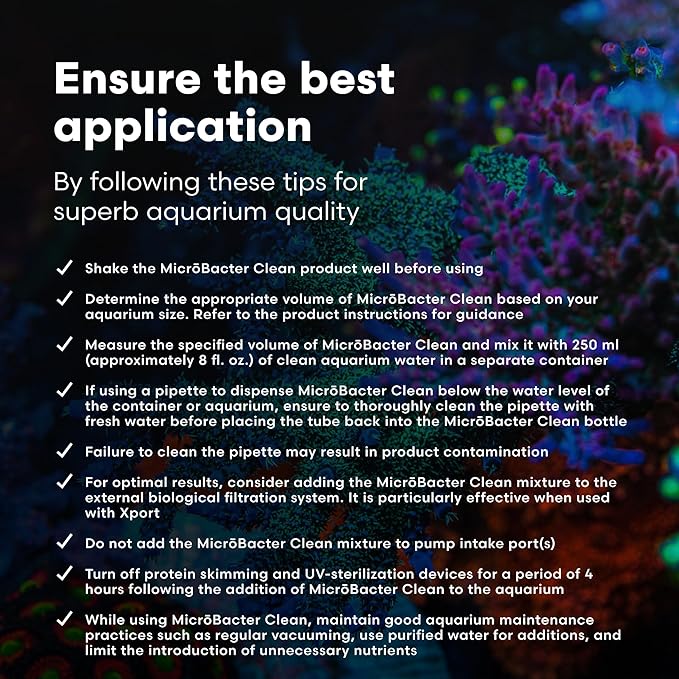 - COMBAT THE "UGLY STAGE" – Professionals use MicrōBacter Clean as a fish tank cleaner to prevent much of the ugliness that occurs after the initial cycling of your aquarium. The "ugly stage" can be challenging, with this aquarium tank cleaner, you can maintain a cleaner and a visually appealing tank