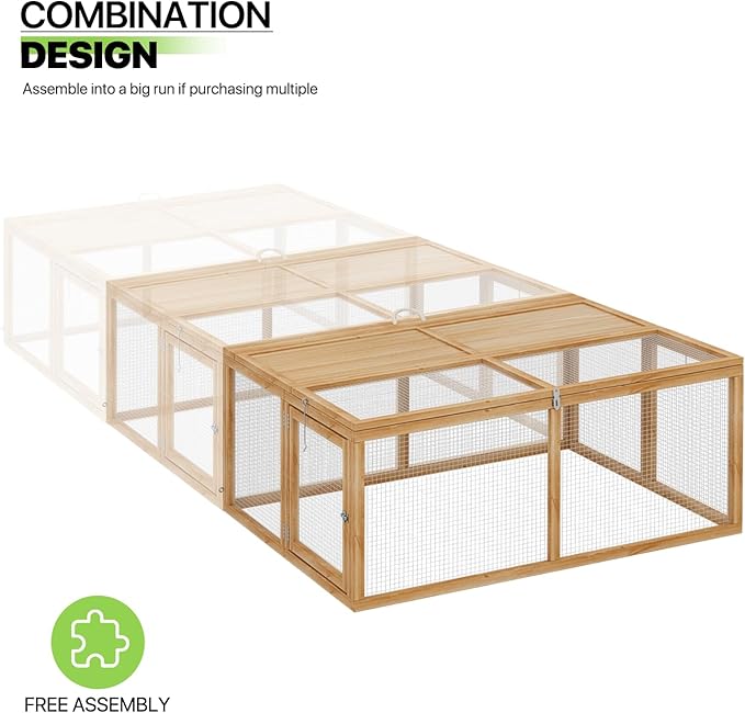 - Foldable Chicken Coop Run: No assembly required, this chicken coop folds up easily for storage without worrying about limited space. Just grab the built-in handle to easily carry the wooden playpen from outdoors to indoors.