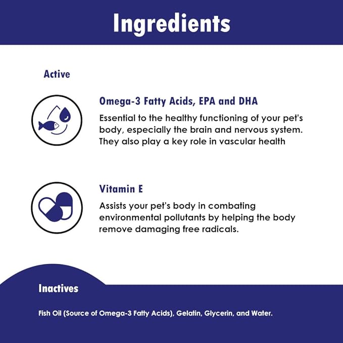 • High Potency EPA & DHA: Provides concentrated omega-3 fatty acids for maximum bioavailability to support skin, coat, joint, and heart health.
