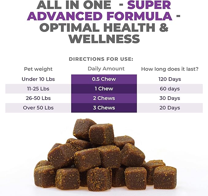 • Dog Vitamins to Support Adult & Senior Dogs: Vet formulated with 18 active ingredients; supports every aspect of your dog's health; suitable for small to large breeds