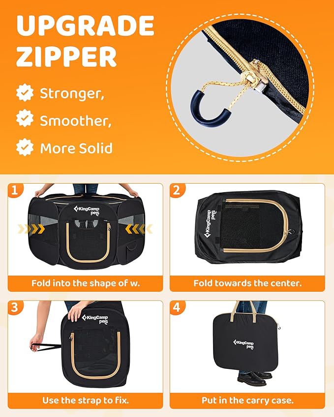 - FULL VENTILATION & SMART ACCESS: Two zippered doors (front & back) provide pets easy entry and exit, while breathable mesh panels on the sides and top ensure 360° airflow and sunlight. The top of pop up playpen can also be zipped open for direct interaction, ideal for bonding moments without unzipping the entire structure.