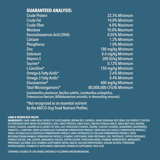 • Real Meat First: Lamb is the #1 ingredient; protein helps keep your dog at their bounding best