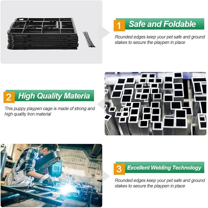 • DURABLE METAL FENCE PANELS: Heavy-duty iron with a rust-resistant finish makes this fence strong and secure. Use the sturdy fence panels as a dog fence outdoor for yard or indoor setup.