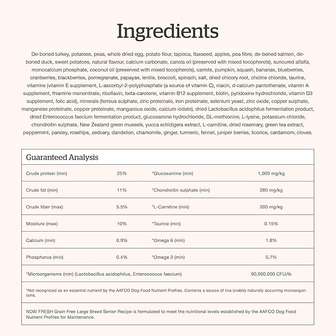 Now Fresh Grain-Free Large Breed Senior Dry Dog Food with Turkey, Salmon & Duck, Premium Kibble Made with Real Meat & Fish, Chicken-Free, Added Glucosamine & Chondroitin for Healthy Joints, 25 lb Bag