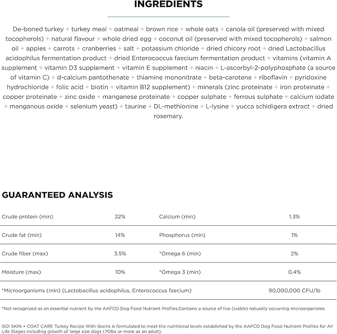 Go! Solutions Skin + Coat Care, Dry Dog Food, Turkey Recipe with Grains, 3.5 lb Bag
