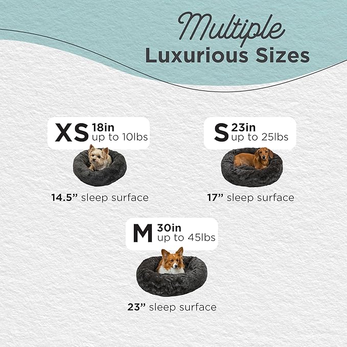 - Calming Dog Bed: 30-inch donut cuddler provides a cozy haven designed to help soothe anxiety and stress in medium dogs up to 45 lbs; ideal for breeds such as Cocker Spaniel, Beagle, Boston Terrier, Shiba Inu, Corgie, French Bulldog, English Bulldog