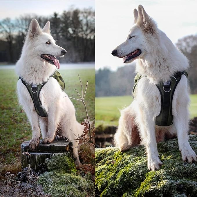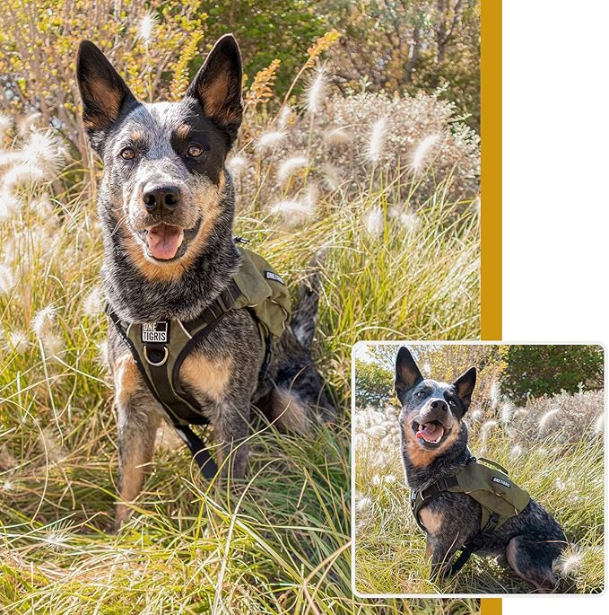 OneTigris Y-Shaped Dog Backpack with Handle, Pockets & No Pull D-Rings, Lightweight Hiking Gear for Dogs Hunting Camping Travel (Large, Green)