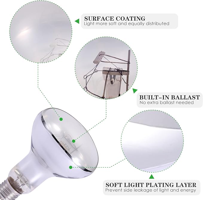 - 【SELF-BALLASTED】This uvb heat reptile light is completely self-ballasted and with integrated thermal protection against overheating, no external ballast required. Not to be used with dimmers/rheostats.