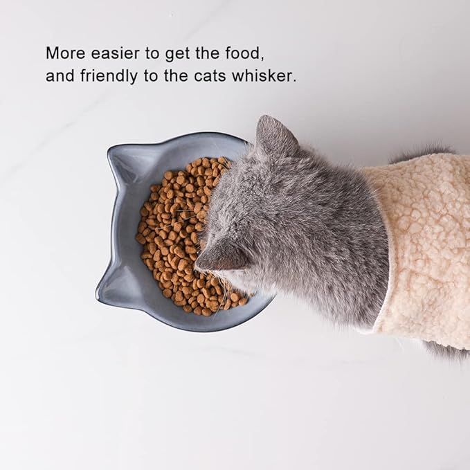 • 【Tilt Angle Design】The tilt angle design keeps food piled and falls to the center, it helps keep the food from being pushed off the bowl. The widened dish design makes the cat easier to get food and friendly to the cats whisker.