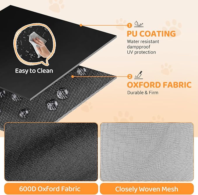 - DURABLE & EASY-TO-CLEAN: Crafted with reinforced 600D Oxford fabric and scratch-resistant mesh windows, this pet tent is tough enough to handle active paws and playful pets. The fiberglass poles offer strong, flexible support, keeping the tent stable indoors or outdoors. The durable materials also make cleanup a breeze, just wipe with a damp cloth.