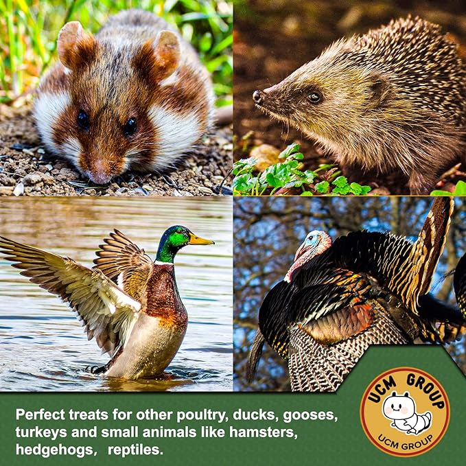 • 【Perfect treats for animals】Our mealworms with high protein and other essential nutritions for animals. This will help the baby chickens or birds grow up stronger and healthier. Improve the condition of pets and supplement nutrition. They are also excellent for ducks, turtles, hedgehogs and wild birds.
