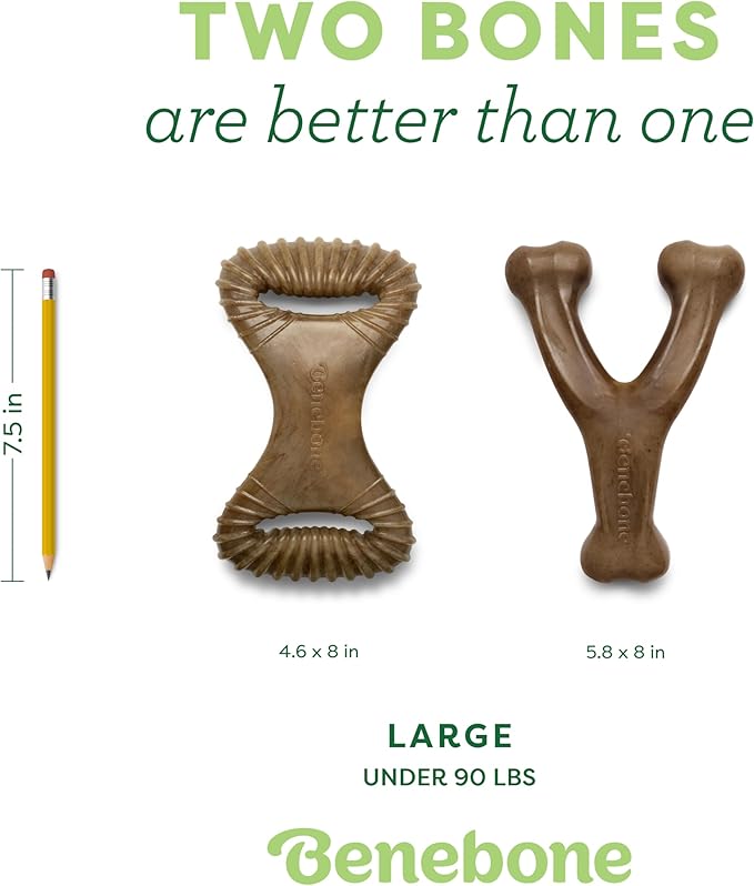 Benebone 2-Pack Wishbone/Dental Durable Dog Chew Toys, Real Bacon, Made in USA, Large