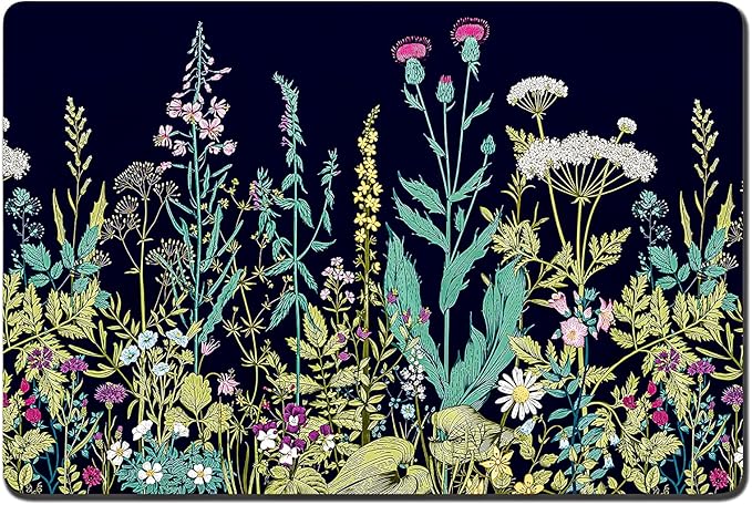 Rnivvi Dog Food Mat, 16" x 24" Flower Absorbent Dog Cat Bowl Mat for Food and Water, Cute Anti-Slip Rubber Pet Feeding Rug Protect Floors, Puppy Placemat for Feeding & Watering Supplies,Black Floral