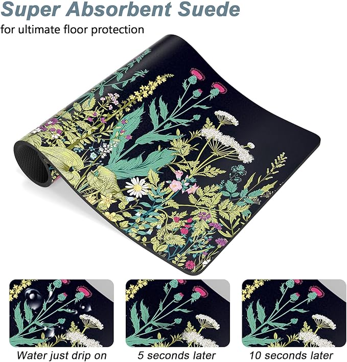 • Super Absorbent Placemat: Aesthetic dog food mat surface is made of absorbent suede with soft, anti-fray which can quickly absorb liquid and wet food stains to prevent prevents food & water from spilling onto floor