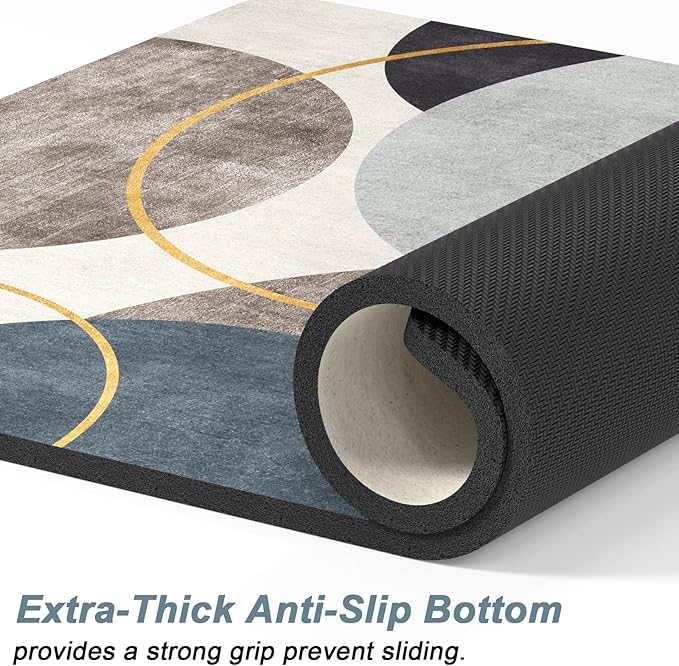 Rnivvi Dog Food Mat, 12" x 19" Boho Absorbent Dog Cat Bowl Mat for Food and Water, Cute Anti-Slip Rubber Pet Feeding Rug Protect Floors, Puppy Placemat for Feeding & Watering Supplies, Abstract Circle