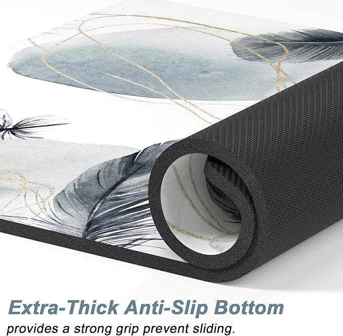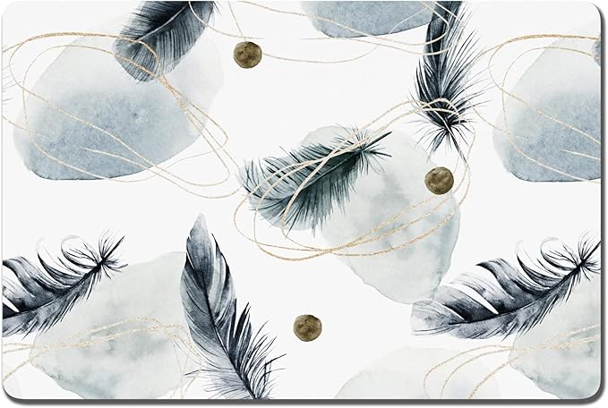 Rnivvi Dog Food Mat, 16" x 24" Absorbent Dog Cat Bowl Mat for Food and Water, Cute Anti-Slip Rubber Pet Feeding Rug Protect Floors, Puppy Placemat for Feeding & Watering Supplies, Abstract Plume