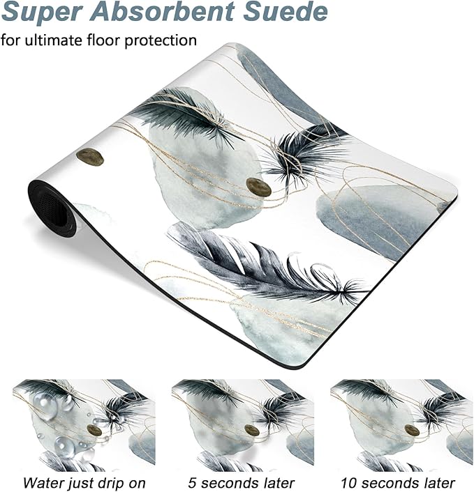 • Super Absorbent Placemat: Aesthetic dog food mat surface is made of absorbent suede with soft, anti-fray which can quickly absorb liquid and wet food stains to prevent prevents food & water from spilling onto floor