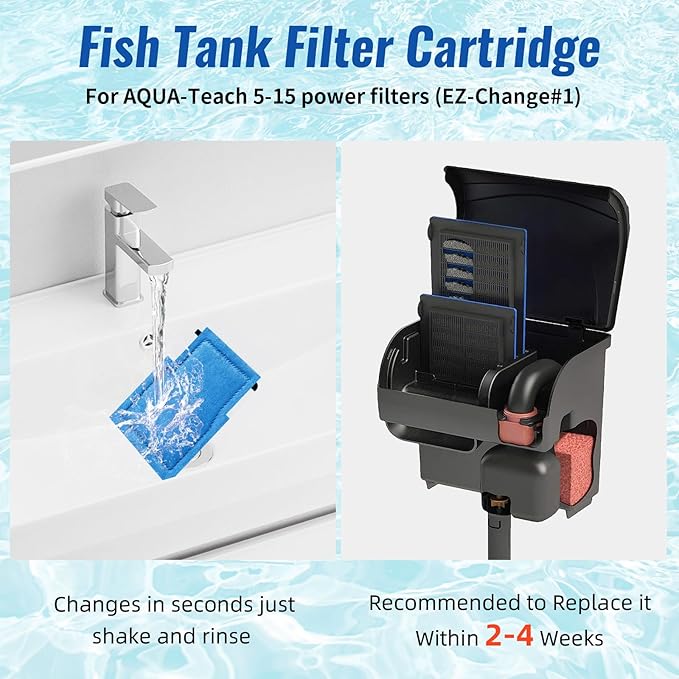 • Aquarium filters 30-60 gallon/20-40 gallon fish tank are easy to change. To ensure optimal cleanliness, we recommend replacing the aquarium filter cartridges every 2 to 4 weeks