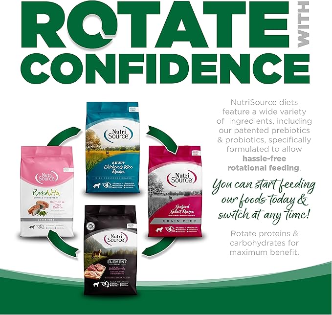 • NutriSource grain inclusive formulas deliver compact nutrition and include prebiotics and probiotics to help support a healthy gut