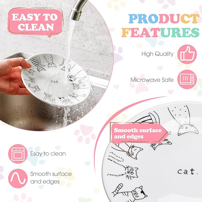 • Cute Patterns: cat dishes for food are ideal for feeding, decorated with cute cat patterns, adorable and classic, increasing the appetite of kittens, easy to clean, not leaving smell for next meal
