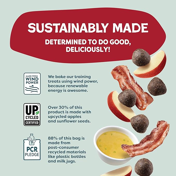 - Whole Ingredients: These high-reward treats are free from corn and soy while loaded with wholesome ingredients like real bacon, pork hearts, pork bone broth, and apple. At only 3 cal/treat, these are the perfect mini to medium rewards for your pup throughout the day. Dogs of all ages, sizes, and breeds can enjoy these firm and chewy treats.!