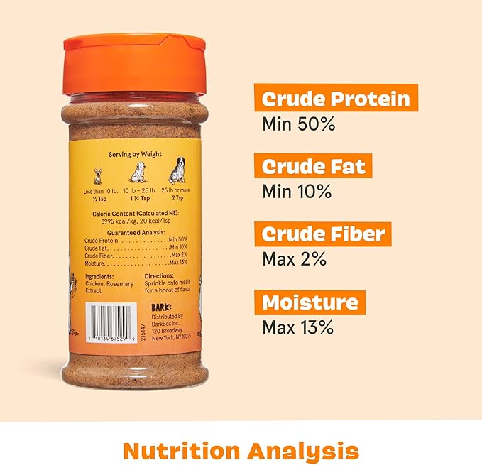 Barkbox Chicken Dog Treat Topper, High Protein Ingredients for All Breeds, Rosemary Extract for Large & Small Breeds, Elevate Dog Food Dining - Shake & Pour for Dog Bowls