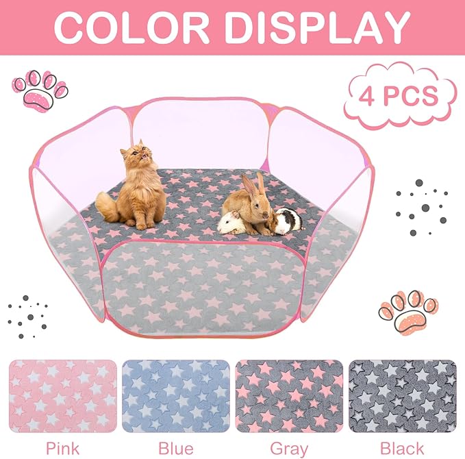 - Sufficient to Use and Replace: you will get 4 small animal playpen liner washable in 4 colors, and the guinea pig bedding is in a regular hexagon with sides 24 inches/ 60 cm and the longest diagonal side is 47 inches/ 120 cm, fits most portable playpens for small animals, widely suitable as sleeping mates for guinea pig, chinchillas, bunnies, hamsters, ferrets, rats, hedgehogs, cat and puppy, bearded dragon, small reptile and so on