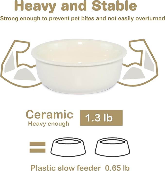 • HEAVY WEIGHTED & ANTI-SLIP: The thick ceramic material and the rubber feet of the pet bowls prevent it from tipping over and sliding.