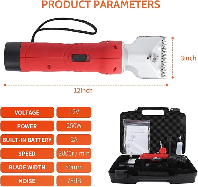 - [CORDLESS BATTERY POWER HORSE CLIPPER] -- Professional rechargeable horse clipper with high power motor, up to 2800rpm, charging for 2 hours, can be used for nearly 3 hour, no longer need power line control, you can cut hair for domestic animals anytime, anywhere Easier and save your time.(2* 4000 amh battery included)