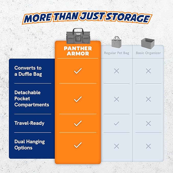 Panther Armor Dog Travel Bag- Hanging Dog Organizer & Pet Storage Tote Bag for Supplies, Waterproof Door Storage & Closet Organizer, Food & Treat Container for Travel Accessories