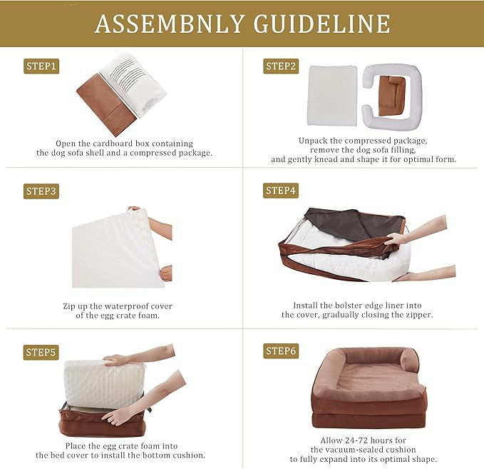 Bedfolks Orthopedic Dog Bed, Waterproof Dog Sofa Bed for Medium Dogs, Egg Foam Pet Couch Bed with Removable Washable Cover and Nonslip Bottom, Brown