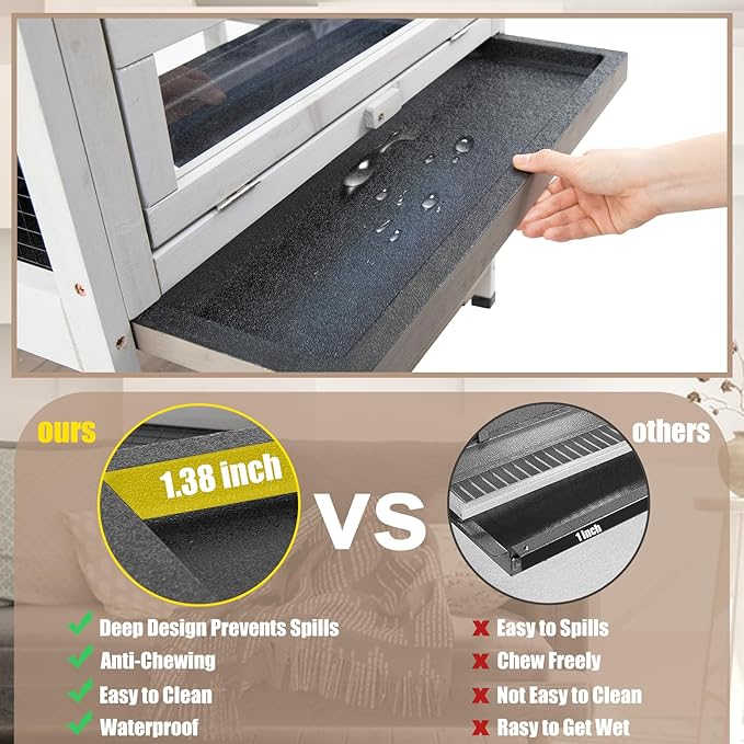- 【Easy Clean with Bottom Tray】Our hamster cages large are upgraded with a 2.36” Deeper plastic tray which is sturdy and durable to hold more shavings. A removable tray with a leak-proof can be simply pulled out to clean the litter or bedding to create a healthy living atmosphere for your hamsters, gerbils, guinea pigs, mice, hedgehog, chinchillas, etc.