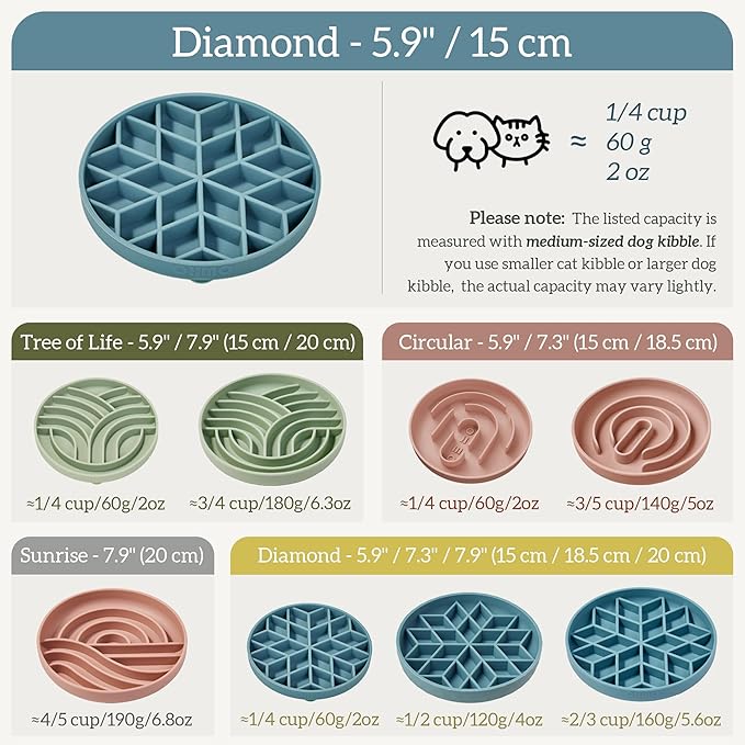 OHMO Slow Feeder Dog& Cat Bowl, Silicone Puppy Cat Food Bowl with Anti-Slip Suction Cup Slow Down Small Dogs Eating, Anti Choking (S-Diamond,Light Blue)