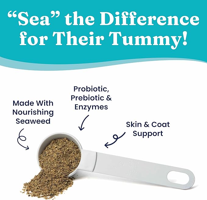 Solid Gold SeaMeal Cat Probiotic & Dog Probiotics for Digestive Health - Kelp Powder Dog & Cat Multivitamin Supplement w/Prebiotics & Digestive Enzymes for Skin, Coat, & Gut + Immune Support - 8oz