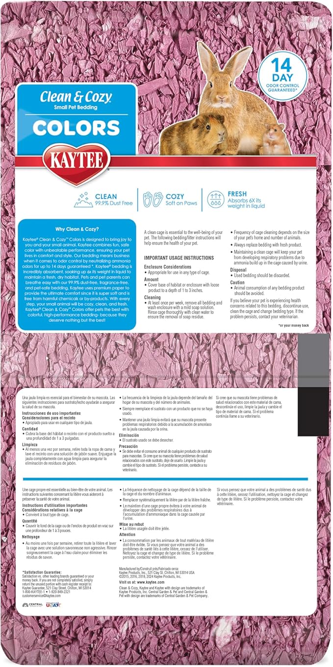 • MAKE YOUR PET’S HABITAT FUN with vibrant animal bedding. Kaytee Clean & Cozy Colors are available in multiple options to match your aesthetic and help you create a stylish habitat for your pet.