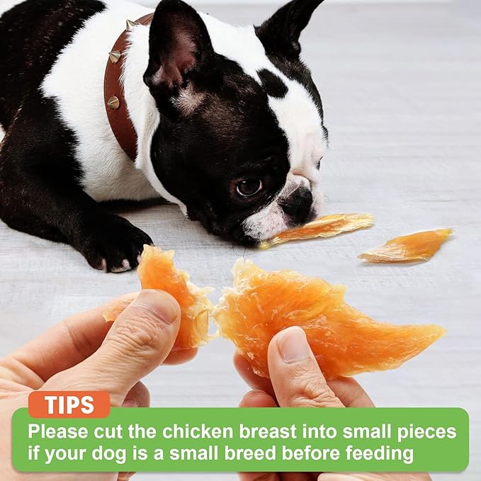 • [Cut to small pieces] You can cut the chicken breast into small pieces if your dog is a small breed. And the small pieces also can be used as good training rewards when you are training your dog.