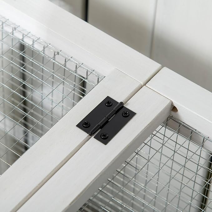 • Solid Construction: This bunny cage is made from strong, solid fir wood. Its color scheme goes well with both indoor and outdoor decor.