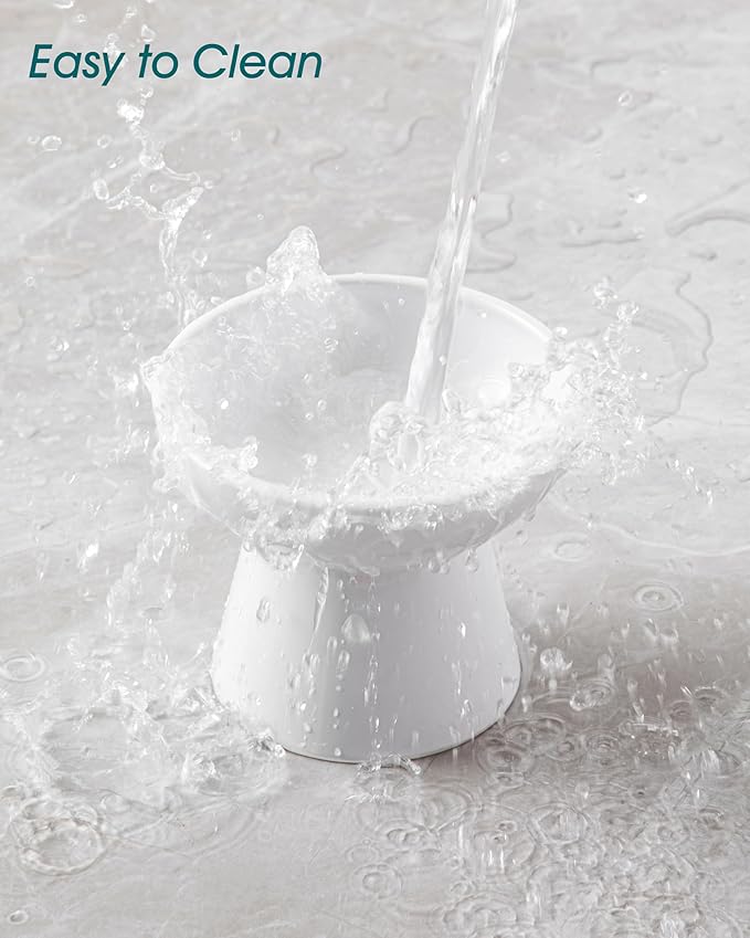 - 【Promotes Comfortable Eating Posture】The elevated cat bowl design (5.1" height) reduces neck strain and supports a natural feeding posture. It helps reduce vomiting and aids digestion, making it especially beneficial for senior cats and those with arthritis