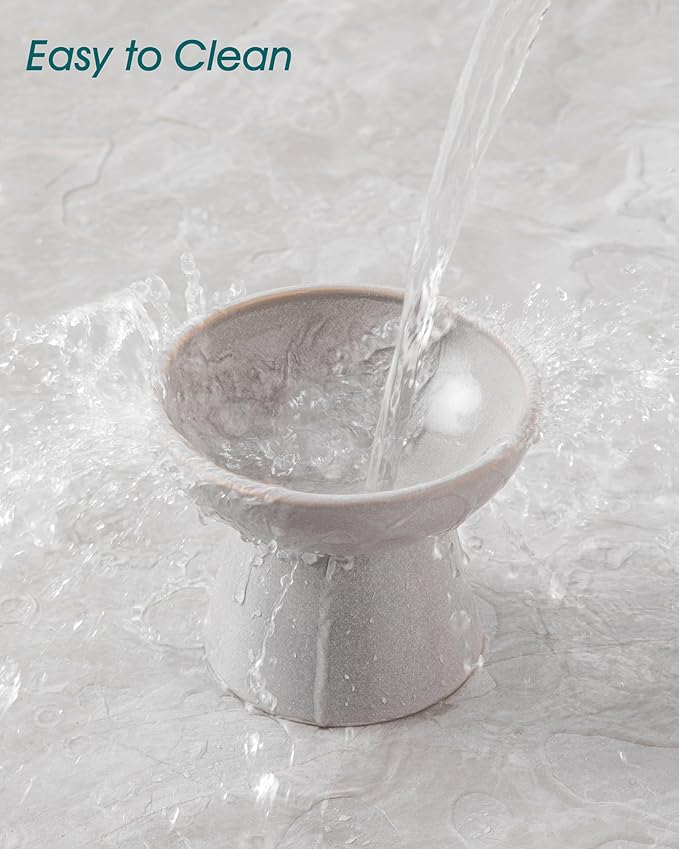 - 【Maintain a Clean Chin】Crafted from premium, lead-free, and cadmium-free ceramic, this cat food dish provides a safe and clean feeding experience. Unlike plastic, it won’t absorb odors or stain. The smooth, non-porous surface makes cleaning effortless—simply rinse with warm water, and it’s ready for your pet’s next meal