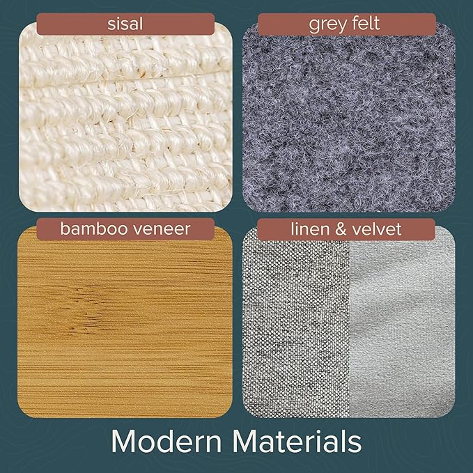 - MODERN, STYLISH DESIGN - Combining functionality with a modern interior aesthetic, this cat tree features a bamboo pattern veneer and slate gray felt for neutral tones. Satisfying scratcher posts are wrapped with a natural and replaceable sisal rope to help improve claw health.
