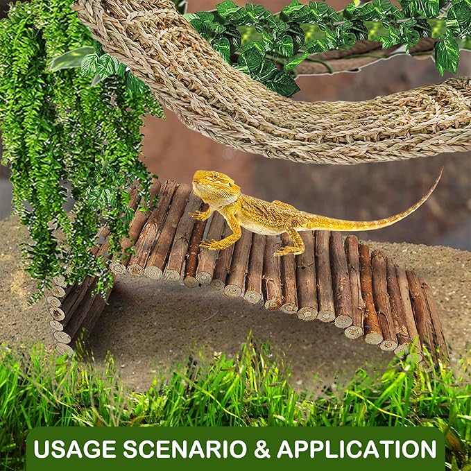- 【reptile bridge】Bendable ladder bridge is made of wood and wire, reptile wooden bridge is can be as large wooden reptile hideout.reptile bridge can give off a natural wood odor.The wooden reptile tunnel is easy to bend to fit various shapes and sizes.reptile ladder can be used as a tunnel, bridge or ramp.you can DIY