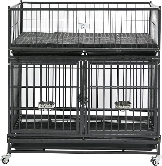 - Flexible Setup: The dog cage for small/medium dogs can be stacked or used independently, offering two setup options. As your puppy grows, they can transition into the dog crate, ensuring a comfortable and suitable space at every stage