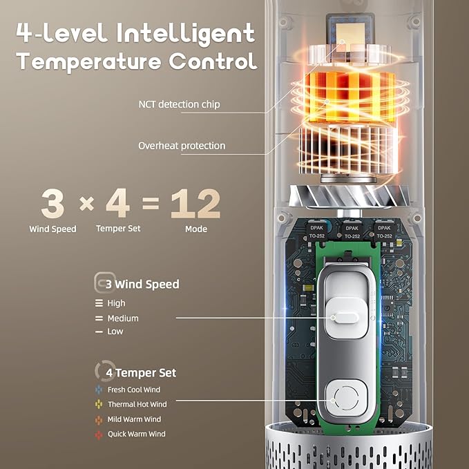 • 12 Modes & Safe Temp Control: 3 speeds + 4 temps suit all pets & seasons; NCT chip & overheat protection ensure safe, comfortable warmth.