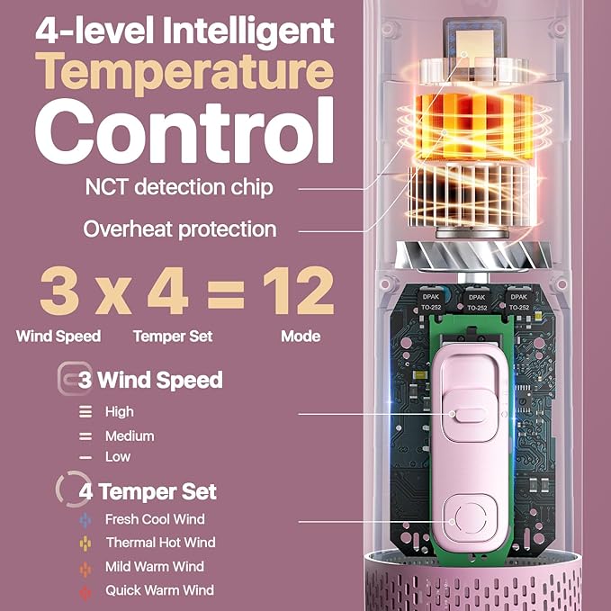 - Intelligent Temperature Control: This dog blow dryer offers 4 - level temperature adjustment. With 3 speeds and 4 tempes, it combines into 12 modes, suiting various pets' drying needs in different seasons and fur conditions. Equipped with overheat protection and an NCT detection chip, it monitors temperature in real - time to ensure wind stays at a suitable temperature, making your pet feel warm and comfortable during drying, giving you peace of mind while using it.