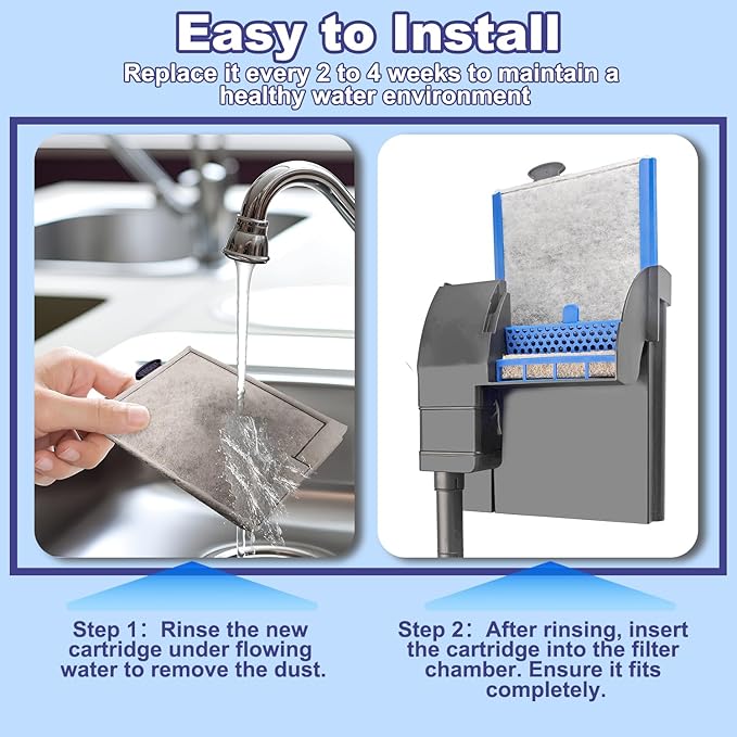 - Suggestions for Use: Suggest to change filter cartridge every 2-4 weeks.Regular cleaning or replacement of the filter cartridge helps to extend the service life of the fish tank filters,while the maintenance is simple, which helps to maintain the long-term stability of the water quality of the aquarium.