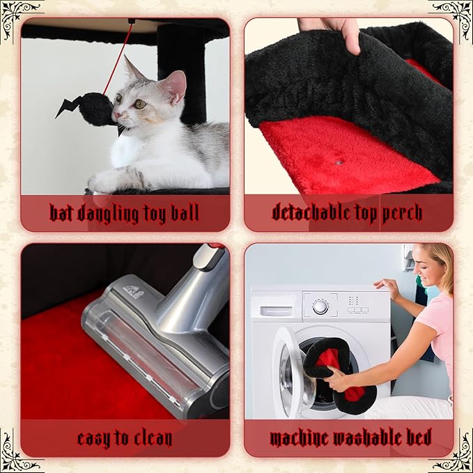PEQULTI 45.7'' Gothic Cat Tree for Indoor Cats with Metal Frame Big Hammock, Cat Tower for Small or Medium Cats with Cat Condo House, with Scratching Posts and Top Perch, Black