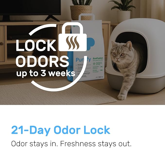 - 99.8% Dust-Free, 98% Odor Control, Fast Clumping Enjoy a cleaner litter experience—ultra-low dust to protect lungs and surfaces, odor control that lasts up to 21 days, and fast clumping for easier daily cleanup.