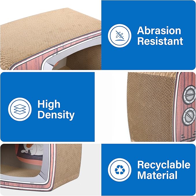 • Eco-Friendly & Safe: Constructed from 100% recycled corrugated cardboard, non-toxic, and glue-free materials, ensuring a safe and eco-conscious choice for your cat's entertainment. Dimensions: 17.3L13.4W9.1H inches.